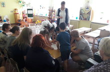 В детском саду прошёл обучающий семинар-практикум для слушателей курсов ПК работников образования по направлению "Логопедия" на тему "Современные подходы к организации коррекционной работы с детьми с нарушениями речи". Слушателям курсов были показаны групповые и индивидуальные занятия с детьми старшей и подготовительной логопедических групп. Логопед Когогина Н.В. организовала выставку логопедических книжек самоделок, направленных на постановку какого-либо звука. Также опытом работы поделились логопеды из детских садов п. Осиново.