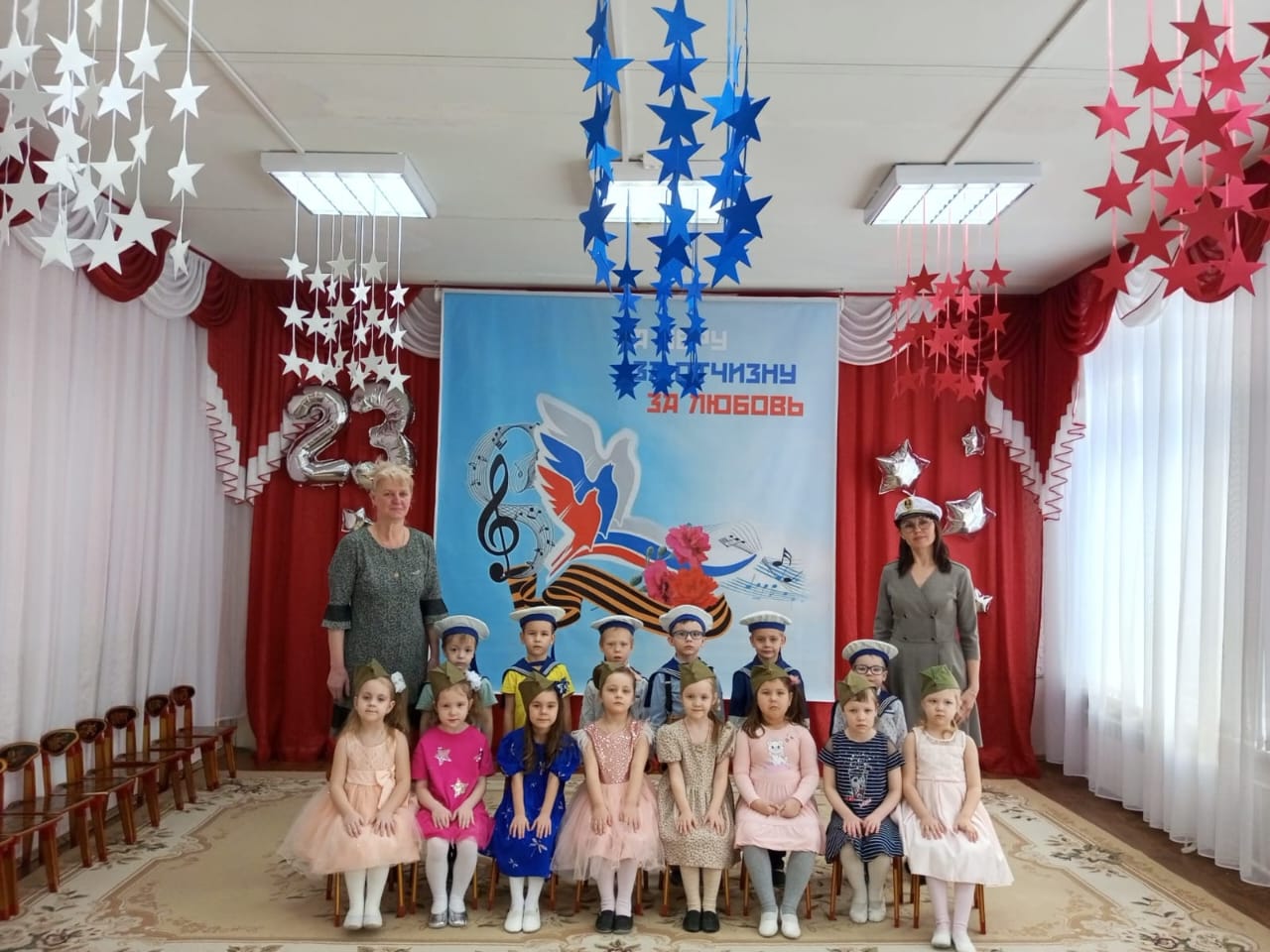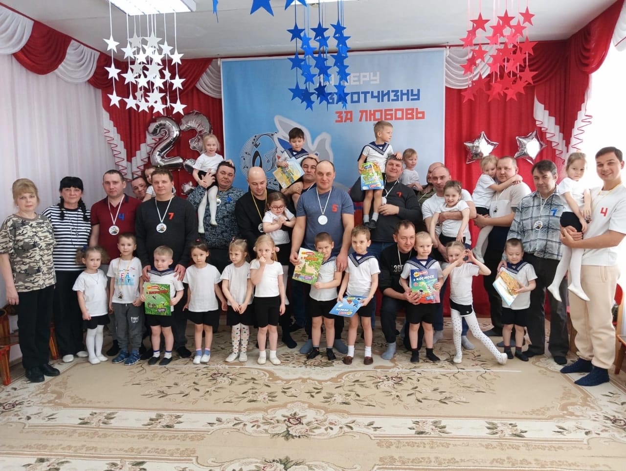 23 февральдә балалар бакчасында бәйрәм-мәктәпкәчә яшьтәге балаларда патриотизм, үз Ватанының иң яхшы традицияләренә катнашлык хисе тәрбияләү өчен яхшы сәбәп. Балалар белән үткәрелгән мондый чаралар аларның күңелләренә патриотизм бөртекләре, Ватан алдындагы бурыч хисләре сала. Бәйрәм алдыннан балалар бакчасы төркемнәрендә төрле чаралар узды.