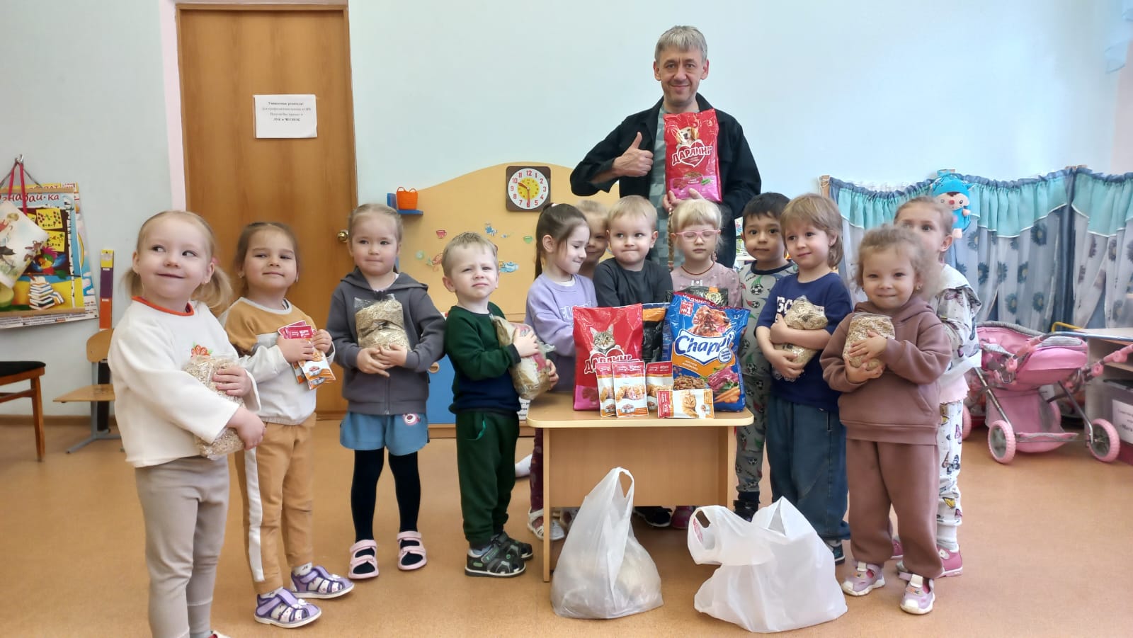 Воспитанники нашего детского сада присоединились к тематической неделе «ЗооЗабота» собрали корм для приюта животных "Кот и Пес". Представитель приюта Альберт Галиев поблагодарил воспитателей, родителей и детей за заботу о животных.Помощь животным – это важный этап воспитания, который помогает выработать в себе ответственность и уважительное отношение к миру природы. Благодаря этому развивается способность понимать эмоции других существ, что положительно сказывается на их общении с людьми. С самого раннего возраста дети могут научиться видеть в животных друзей, нуждающихся в любви и заботе, а также начинают осознавать значимость каждого существа вокруг.