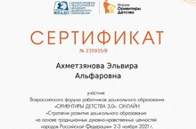Всероссийский Форум «Ориентиры Детства»/ "Балачак Ориентирлары» Бөтенроссия Форумы 03.11.2021 2-3 ноября 2021г., состоялся Всероссийский форум работников дошкольного образования «Ориентиры Детства 3.0».Онлайн «Стратегия развития дошкольного образования на основе традиционных духовно-нравственных ценностей народов Российской Федерации. Председатель Оргкомитета Форума ректор МПАДО Н.Е.Веракса. Педагоги нашего детского сада прошли регистрацию и приняли активное участие, общаясь в чате с коллегами. Все участники получили сертификаты.