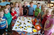 Синичка невеличка 12.11.2025 Нетрадиционные техники рисования помогают детям развивать фантазию, мелкую моторику рук и творческое мышление. Одним из увлекательных способов является создание рисунка с помощью воздушных шаров. Представляем вашему вниманию коллективное творчество наших малышей группы N1 .
