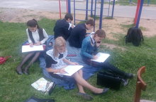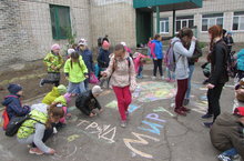 Сегодня в пришкольном лагере состоялся конкурс рисунков на асфальте "Мы - за мир!". Все отряды включились в это увлекательное занятие, не замечая прохладной, совсем не летней погоды! Вся площадка во внутреннем дворике гимназии превратилась в цветной ковер, где главным лозунгом дня, который выводили на асфальте дети, был "МИР!", "СЧАСТЬЕ!", "ДЕТСТВО!"