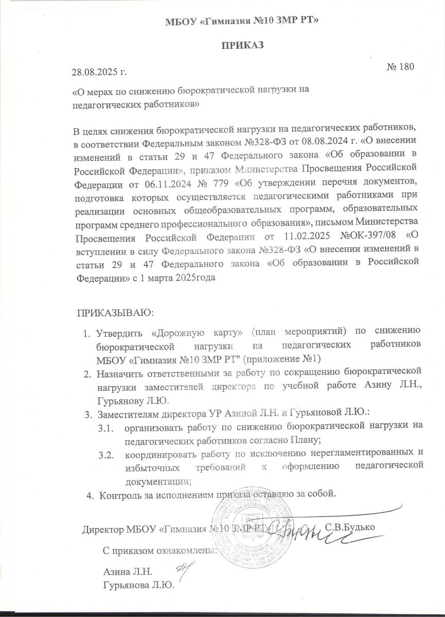 Приказ "О мерах по снижению бюрократической нагрузки на педагогических работников"