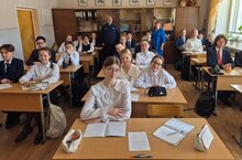 Директор Центра творчества, депутат городского Совета Ирина Фесенко и руководитель Музея участников боевых действий Руслан Хасанов провели Парламентский урок в 8 классе гимназии №3 14.03.2025