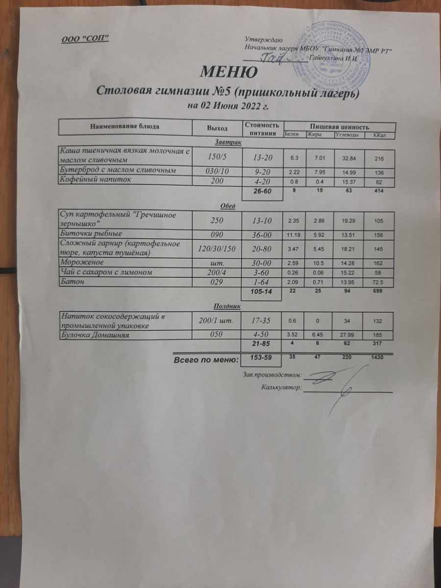 Меню для организации питания детей в пришкольном лагере с дневным пребыванием детей 2025г.