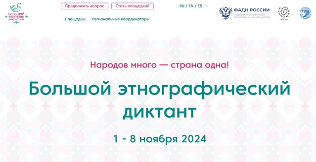 Опубликовано: 24.10.2024В рамках реализации государственной программы Российской Федерации «Реализация государственной национальной политики» Федеральное агентство по делам национальностей в период с 1 по 8 ноября 2024 года проводит IХ Международную просветительскую акцию «Большой этнографический диктант».