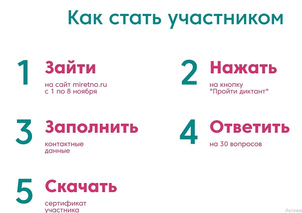Диктант можно пройти в Онлайн формате - на сайте: www.miretno.ru