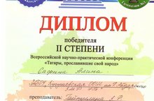 Бүген Яшел Үзән шәһәренең 3 нче гимназиясендә "Үз халкын дөньяга таныткан татарлар" диеп исемләнгән Рәсәйкүләм фәнни-гамәли конференция үтте. Безнең мәктәпнең 9 нчы сыйныф укуысы Сафинә Алинә әлеге бәйгедән 2 дәрәҗәдәге диплом белән кайтты. Котлыйбыз!