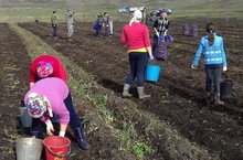 Мәктәп бакчасында көзге эшләр дәвам итә. Бүген мәктәп коллективы бәрәңге уңышын җыйды.