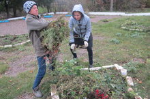 Бүген мәктәптә чираттагы өмә узды. Бакчаны коелган яфраклардан һәм чүп-чардан чистарттык.