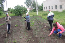 Бүгеннән 5 нче сыйныф укучыларының мәктәп яны бакчасында җәйге практикалары башланды. Алар түтәлләрне чүптән чистарталар, су сибәләр. Бакчада эшләр гөрли.