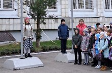В понедельник 23 сентября торжественное право поднять флаги Российской Федерации и Республики Татарстан было предоставлено Семеновой Елизавете, ученице 4А класса,- Победителю научно-практических конференций и предметных олимпиад, и Салахову Хасану- ученику 4А класса-лучшему нападающему хоккейной команды "Тигры".