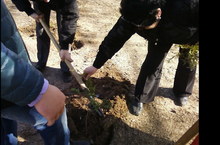 Все учащиеся нашего лицея принимают активное участие в Месячнике по благоустройству города. На снимке: учащиеся 11 класса закладывают "Аллею выпускников".