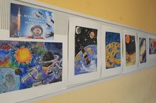 Более 60 рисунков учащихся 2-9 классов на тему "Космос.Дети.Гагарин" украсили стены лицея в День космонавтики.