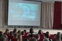 Ученики 6-х классов в День космонавтики посмотрели фильм "Гагарин" и приняли участие в интеллектуальной игре "Все о космосе".