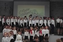 Сегодня в лицее прошла замечательная акция_ поем песни Победы. Все вместе, дружно, всей школой и старшие и младшие классы спели песни "Катюша" и "День Победы".