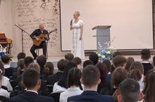 В гостях у лицеистов с великолепной программой, посвященной дню рождения Натальи Гончаровой, музыкант, гитарист, композитор Анатолий Владимирович Ядрышников и исполнительница русских классических, старинных, современных романсов Елена Сергеевна Журавская