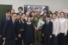 В нашем лицее работает учитель физической культуры Науменко Сергей Никифорович - ветеран боевых действий в Афганистане. Ученики 5 М класса подготовили для него выступление. Сергей Никифорович принес альбом со своей службы. Ученики внимательно слушали рассказ своего учителя.