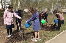 Завершение акции "Эковесна" стало мероприятие по благоустройству школьной территории. Юнармейцы лицея сажали и облагораживали ранее посаженные деревца "Сада Победы"