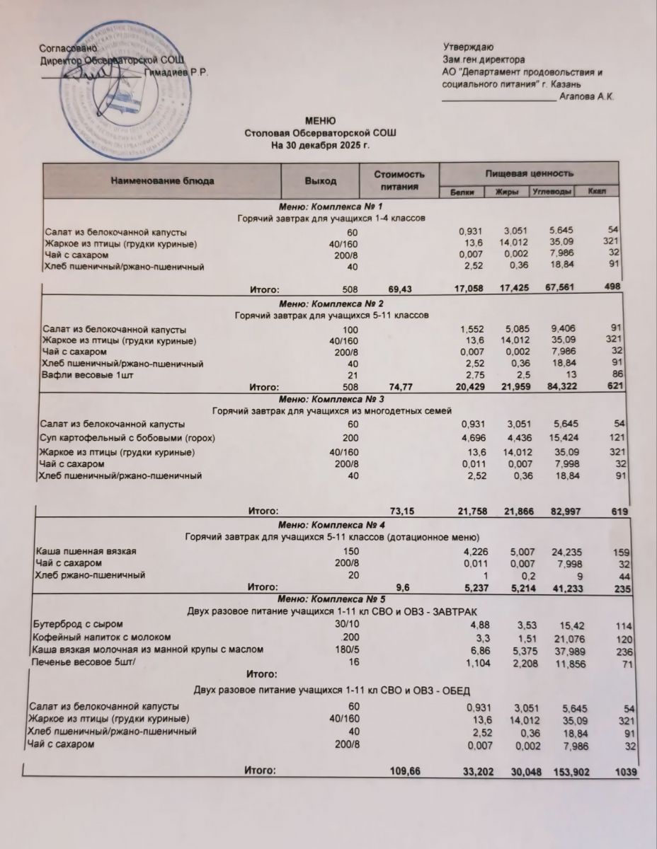 Меню на 2025-2026 гг.