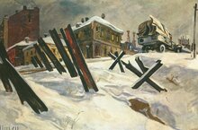 Рубрика "80 дней до Победы" Александр Дейнека "Окраина Москвы. Ноябрь 1941 года" Первым значительным произведением, написанным в осажденной Москве, стала картина «Окраина Москвы. Ноябрь 1941 года» (1941). Запечатленный на полотне мотив городской окраины не располагает самоочевидными внешними достоинствами, его трудно назвать красивым или выигрышным для целей поэтического воссоздания. Тем не менее его целостная структура и каждая часть в отдельности формируют, подсказывают сложный комплекс переживаний, обладающих глубокой эстетической и жизненной ценностью, затрагивающих морально-этические аспекты жизни людей в один из решающих для судеб Родины моментов истории. 29.03.2025