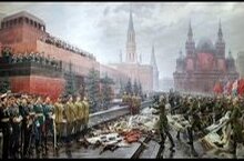 Рубрика "80 дней до Победы" Михаил Хмелько "ТРИУМФ ПОБЕДИВШЕЙ РОДИНЫ" 1949 г. Сюжет картины — кульминация исторического Парада Победы 24 июня 1945 года на Красной площади — момент низвержения захваченных в боях знамён разгромленных фашистских войск. Советские воины сбрасывают вражеские флаги к ногам полководцев-победителей, стоящих у трибун Мавзолея Ленина. Отчётливо узнаваемы Иван Конев, Василий Чуйков, Николай Кузнецов, Леонид Говоров и многие другие, на трибуне товарищ Сталин с руководством страны. В центре картины солдат бросает древко штандарта 1-й танковой дивизии СС «Адольф Гитлер». 05.03.2025