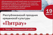 Встречайте вторую половину лета на Республиканском празднике кряшенской культуры «Питрау»☀️ Праздник пройдёт в селе Зюри Мамадышского района 19 июля. Он начнется в 16:00. На поляне Тырлау вас ждут:Театрализованное представление-пролог; Концертная программа с участием фольклорных коллективов; Скачки и спортивные состязания; Ярмарка и мастер-классы;Традиционные игры и угощения. Напомним, что лето в Татарстане — это время праздников традиционной культуры народов, проживающих в республике. Уже прошли Каравон, Семык, Сабантуй и Валда Шинясь, Гырон Быдтон, Уяв, Иван Купала. Приходите всей семьей — будет весело и интересно! #ЛетоВТатарстане #АйдаГулять 19.07.2025