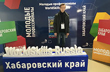 Отборочный этап в Финал 9 Национального чемпионата "Молодые профессионалы" в Хабаровском крае. Компетенция "Токарные работы на станках с ЧПУ". Участник Комягин Илья. Эксперт-компатриот Штыков А.А.