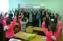 11 сентября 2015 ребята научили первоклассников делать интересную физминутку «Раз подняться, подтянуться…», провели беседу о пользе утренней зарядки и подарили наклейки: звездочки и смайлики.