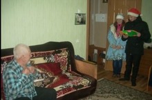24.12.13 в рамках акции "Ветеран живёт рядом" ребята из отряда профилактики "Беркут", учащиеся 8-9 класса, посетили ветеранов ВОВ и подарили им новогодние сувениры и открытки, сделанные учениками начальных классов.