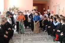 Так начали свое выступление учащиеся 4Б класса перед детьми начальной школы на утреннике "До свидания - зима, здравствуй - весна".