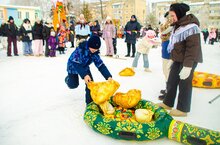 Детей ждали игра «Блинок», «Собери снежки», "Командные лыжи", «Масленичные бои» и сладкие призы!