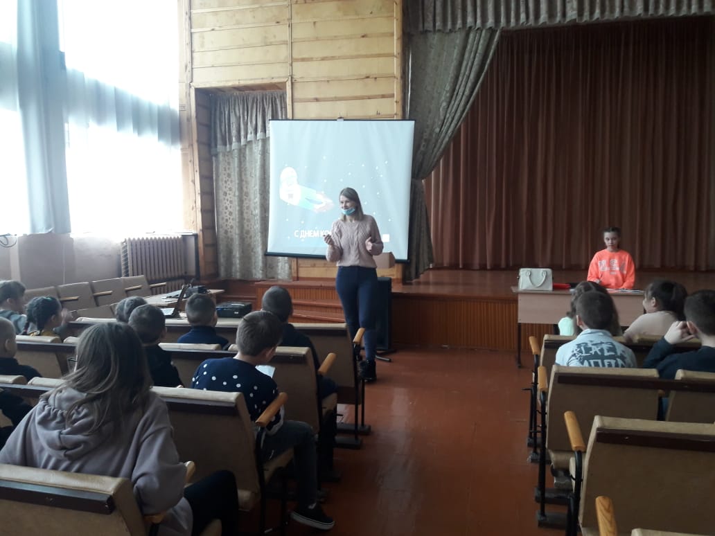 23 марта 2021 года в пришкольном лагере "Солнышко" ВСОШ №2 им. Героя Советского Союза Н.Соболева" педагог дополнительного образования ЦВР Борисюк Е.Ю. и активист объединения "Отрядный вожатый" Кривобокова Анна провели мероприятие "Знатоки космоса" для младшего отряда.