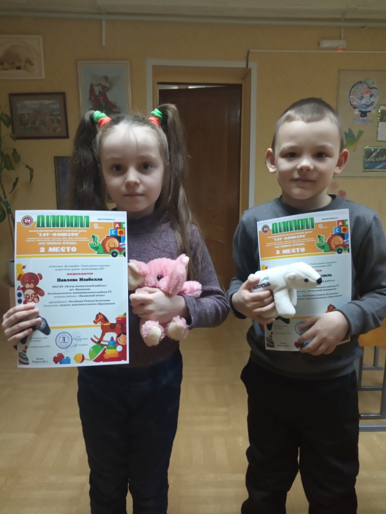 В феврале 2021 года учащиеся объединения «Скоро в школу» приняли участие в республиканском конкурсе «Моя любимая игрушка» и заняли призовые места: Хисамиев Дамир - 1 место, Павлова Изабелла - 2 место, Гаптулхаев Рамиль - 3 место! Поздравляем!!!