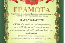 По итогам муниципального Конкурса 2014-2015 учебного года, наш детский сад был признан Победителем муниципального этапа "Лучший билингвальный детский сад-2015". Поздравляем!!!