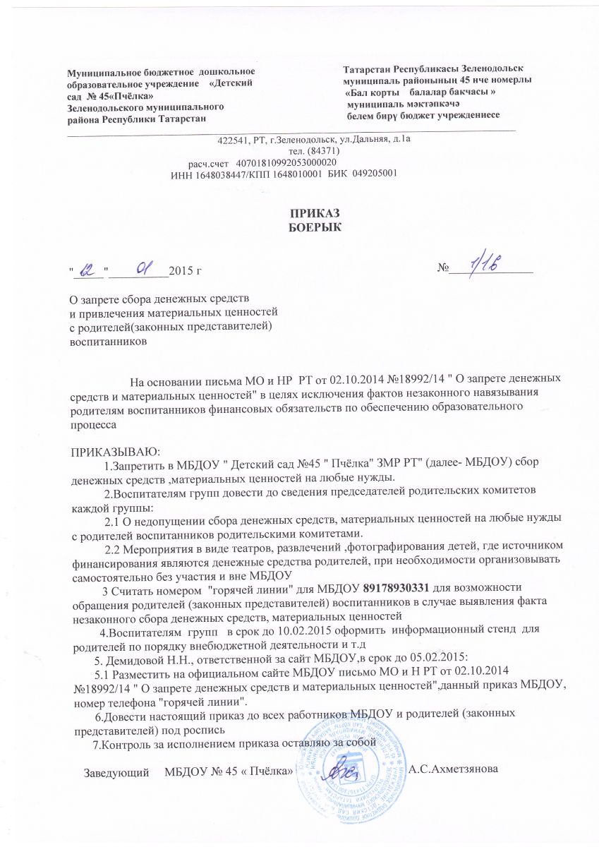 МБДОУ «Детский сад №45 «Пчёлка» Зеленодольского муниципального района РТ» (реорганизация)