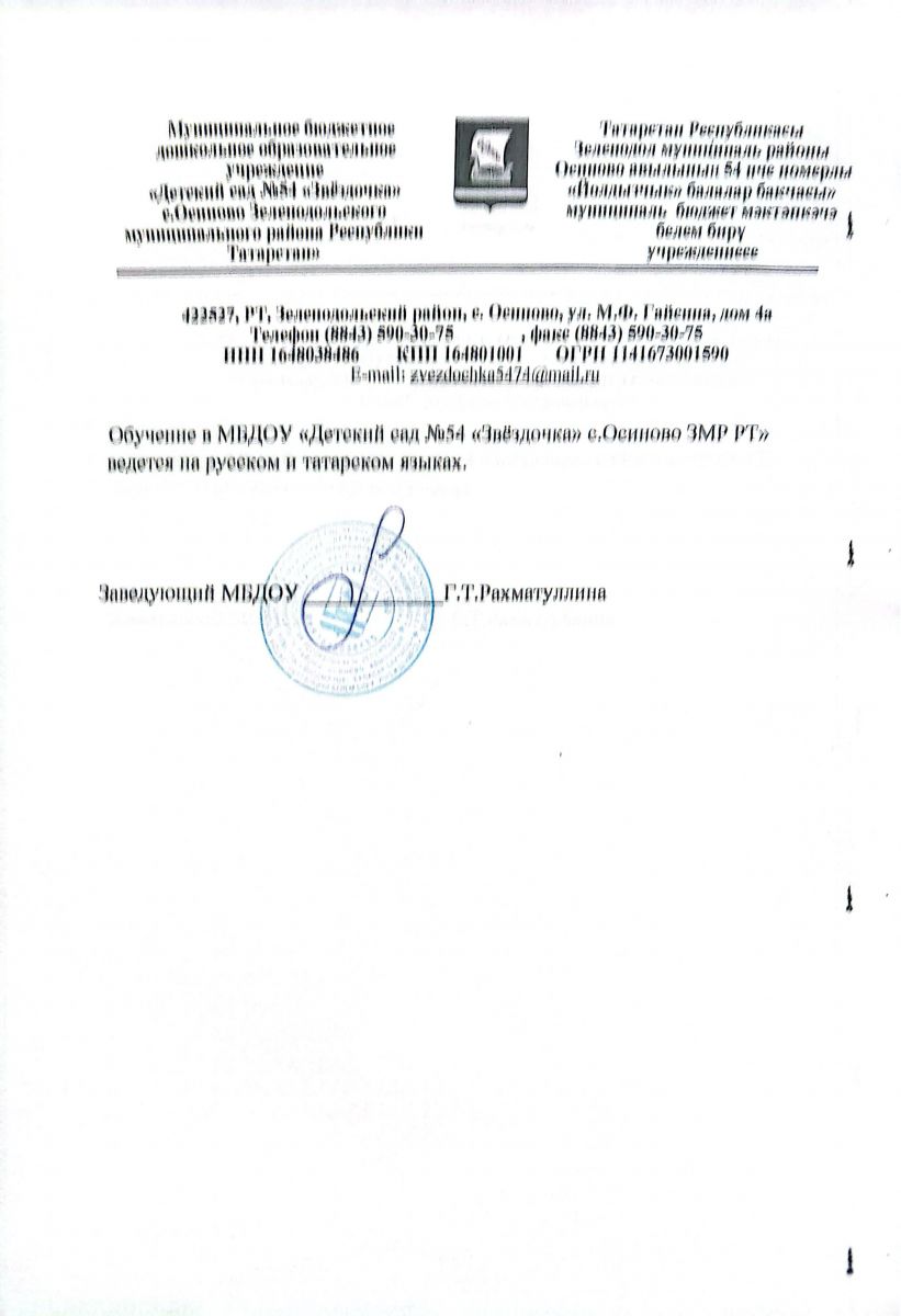 Короткое название: МБДОУ «Детский сад №54 «Звёздочка» с. Осиново ЗМР РТ»