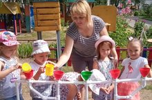 Продолжает пополняться оборудование метеостанции в группе 5 Радуга. Умелыми руками родителей создана зона экспериментирования для игр с водой. Ведь, по словам американского философа Ральфа Уолда Эмерсона «Самое лучшее открытие – то, которое ребенок делает сам». Вода – любимое занятие детей на прогулке, особенно в летний зной. Эстетически оформленный уголок участка - любимое место, ведь играя с водой, они не только получают положительные эмоции, но и проводят опыты, эксперименты, познавая свойства этой чудотворной жидкости.