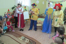 Традиционный праздник в детском саду, которого с нетерпением ждут дети прошел весело и шумно. В каждую группу приходили колядовать ряженые (коза, девица, петрушки, медведь) с музыкальными инструментами, напевая песни.