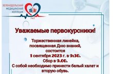 ОБЪЯВЛЕНИЕ 22.08.2023 Уважаемые первокурсники!