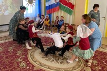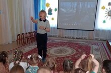 Ребята из группы «Карамелька» показали мини‑спектакль по сказке «Кот, лиса и петух», а в группе «Непоседы» инсценировали рассказ Якова Тайца «Послушный дождик». -