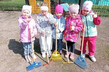 Вот и ребята из группы «Непоседы» учатся бережно относиться к природе и начали свою заботу о планете Земля с уборки своего участка для прогулок -