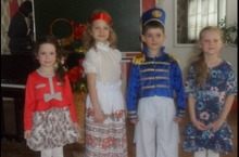 Фадеева Арина "Плач Ярославны" - 1 место,Костюшин Лев М. Ю.Лермонтов "Бородино"- 2 место, Лобачева Евгения отрывок из рассказа И.Бунина "Антоновские яблоки" - 3 место, Айнагоз Кира - защита творческой работы : объемная картина "Славянские куклы"- 1 место.