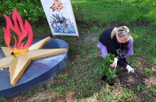 В детском саду продолжаются работы по высадке деревьев и кустарников в Сквере Памяти. Педагоги высадили 8 саженцев сливы, ирги, 3 туи.