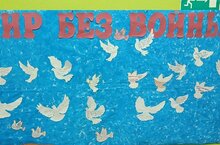 Безнең балалар бакчасында Җиңүнең 80 еллыгына багышланган "Сугышсыз тынычлык" дигән интерактив плакат-акция урнаштырылган, анда теләгән һәркем дөньяга, балаларга, Бөек Җиңүгә багышланган үз сүзләрен урнаштыра ала. Дөнья күгәрченнәренең ак төркеме көн саен тулылана. Барысын да бергә кушылырга һәм "күккә" дөнья күгәрченнәрен очыртып җибәрергә чакырабыз!