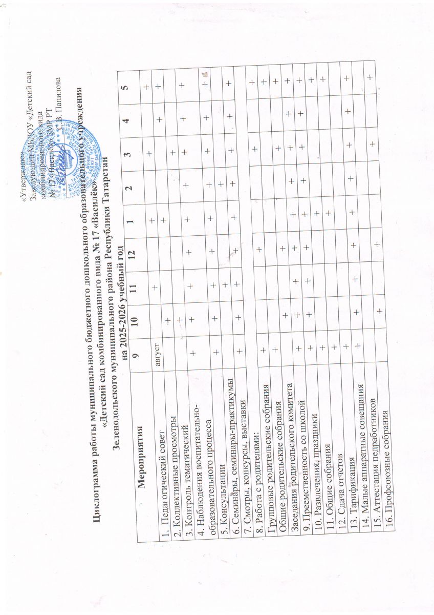 Циклограмма работы МБДОУ "Детский сад комбинированного вида № 17 "Василёк" ЗМР РТ