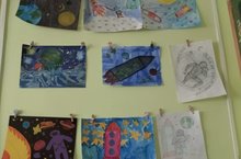 В детском саду проходят тематические выставки детского рисунка "Мир космоса" / Балалар бакчасында "космос дөньясы" дигән балалар рәсеменең тематик күргәзмәләре уза"