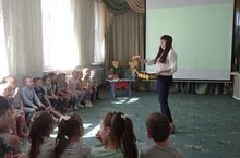 Сегодня у нас в гостях была татарская национальная библиотека. К 135-летию Габдулы Тукая дети слушали рассказ о биографии поэта, читали стихи, рассматривали книги. /Бүген бездә кунакта татар милли китапханәсе булды. Габдулла Тукайның 135 еллыгына багышлап балалар шагыйрьнең биографиясе турында хикәя тыңладылар, шигырьләр укыдылар, китаплар карадылар.