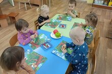 В младшей группе 3, воспитатель Ложкина Т.В., дети лепили яблоки. Развивали мелкую моторику, учились скатывать шарики, затем расплющивать их пальчиком, прикрепляя их к ветке яблони.