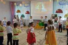 Балалар бакчасында Көзге бәйрәмнәр дәвам итә. Төрле яшьтәге балалар җырлыйлар, бииләр, шигырьләр укыйлар һәм уйныйлар. -